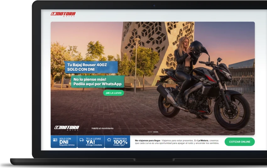 Con La Motora, una concesionaria ubicada en el centro de Córdoba, el desafío consistió en construir una solución integral que comunicara potencia desde la marca, pero que sobre todo resolviera la fricción operativa de un negocio que vende bajo la premisa de “entrega inmediata”.