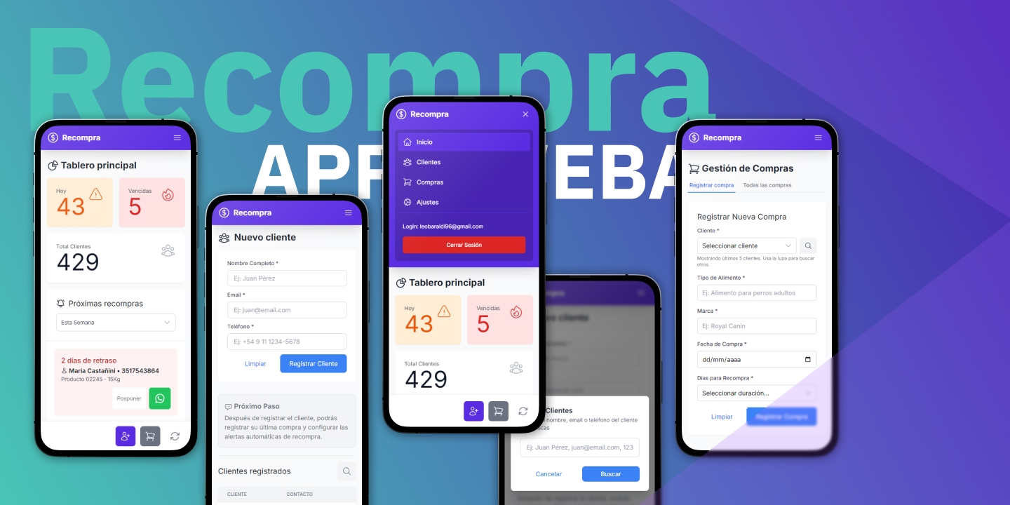 Sistema completo de gestión de recompras, multi-tenant, con panel de administración global, alertas inteligentes y funcionalidades PWA